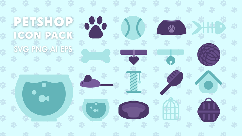 You'll get 16 unique Petshop Icons in 4 high-quality file formats: SVG, PNG, AI, and EPS.
